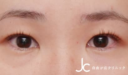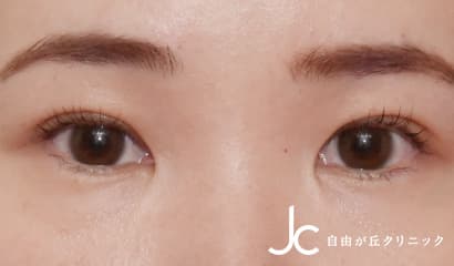 ・腫れがあるうちは、まぶたが十分に開かず、また二重の幅が広く見えるのが通例です。まれに埋没した糸により皮下にしこりができることがありますが、多くは時間とともに改善します。