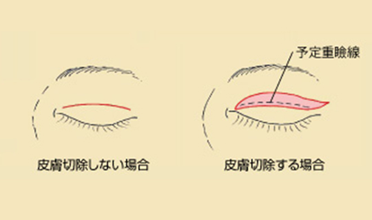 皮膚切除の有無にかかわらず、切開線が結果として二重の線になるので、切開線の位置決めには時間をかけ、慎重にデザインします。