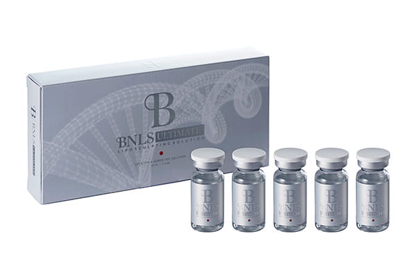 BNLSアルティメットは過去30万件以上の症例データをもとに誕生した、BNLS史上最強の脂肪溶解注射です。 従来のBNLSから、米国FDAで脂肪溶解効果が認められた医薬成分デオキシコール酸が増量され、新たに脂肪燃焼分解に関わる4成分、L-カルニチン、アーティチョーク、カテキン、コエンザイムQ10が配合されています。 BNLSアルティメットにより分解された脂肪細胞や老廃物は毛細血管を通じて尿として排出されます。