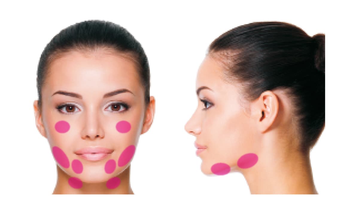 チンセラプラスは頬、フェイスライン、顎下に注入可能です。