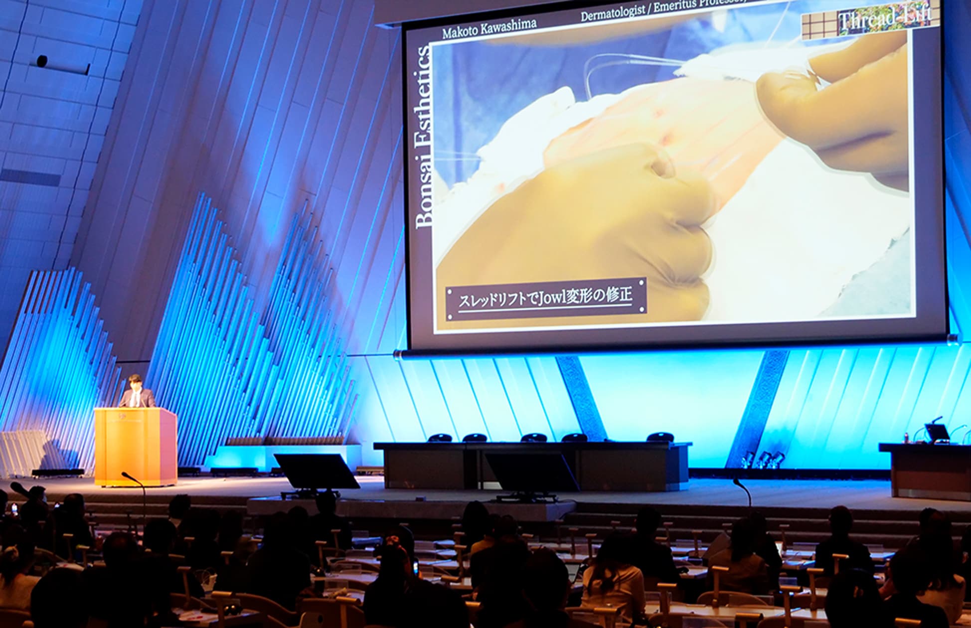 18日にオープニング挨拶を務めた古山理事長は、兵頭医師と共に『ノンサージェリーによるコンビネーション治療での“盆栽”エステティクス』というテーマで講演しました。美容医療と盆栽の「美しさの共通点」などについて語り、大慈弥医師が座長を務めました。